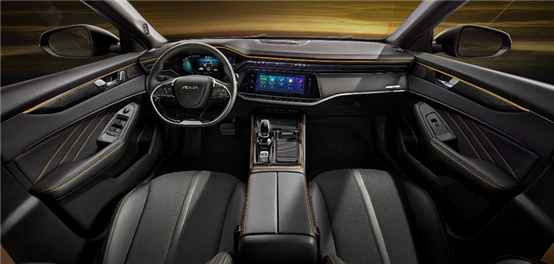 影豹的内饰走的是简约风格,车上配备了尺寸较大的双联屏,贯穿式的出风口增添了中控台的层次感。值得一提的是,影豹的排挡造型也融入了“战机”元素,意在营造浓厚的运动氛围,仿佛暗示这是一台速度之车。