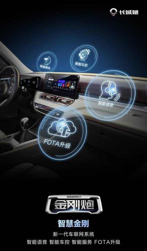 除了外观和内饰设计外,金刚炮对时尚的另一种诠释便是功能齐全的智能化配置。搭载车联网系统的金刚炮拥有智能语音、智能车控、智能服务等功能。什么智能导航、语音控制、远程启动空调等高阶操作,金刚炮都可以轻松实现,并且还支持FOTA升级。