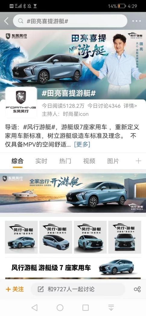 5000万人和田亮一起围观新车亮相 风行游艇营销出圈霸榜热搜!