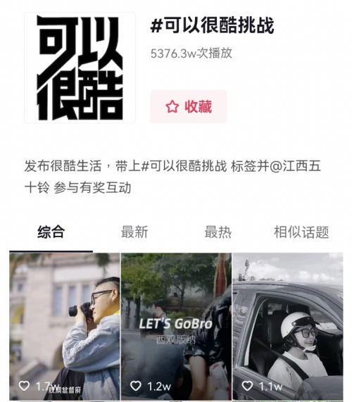 除此之外,江西五十铃还在抖音发起了#可以很酷挑战#抖音全民挑战赛,邀请全民一起喊出心中的酷酷宣言,秀出自己的酷酷生活。只要带话题发布视频,并@江西五十铃,就有机会获得官方送出的510份专属定制大礼。