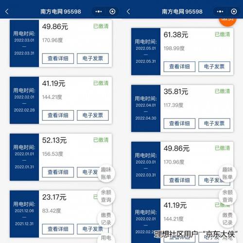 “尊贵的理想车主發哥”晒出了他的用电账单,并分享道:“我每天基本上开70公里左右,其中通勤基本上有50公里,加上带家人出去或者临时办点事,所以每天的充电量平均在16-17度。天津没有峰谷电,是合表,就是无论几点,无论用多少,都是0.51元一度电,这样我每天的用电费用差不多就是8-9元,比坐地铁还合适。理想ONE对于我来说,基本上就是一辆纯电动汽车,6月更是一滴油没有用,虽然现在油价蹭蹭涨,但我已经不关心了。”