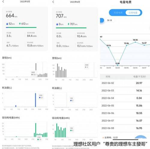 理想社区用户“尊贵的理想车主發哥”是一名有十几年驾龄的司机,也是一位从日系燃油车转为理想ONE的新车主。他说:“一开始,我对于百公里耗电量的概念一无所知,只知道用电肯定比燃油便宜,但没想到这么便宜!”