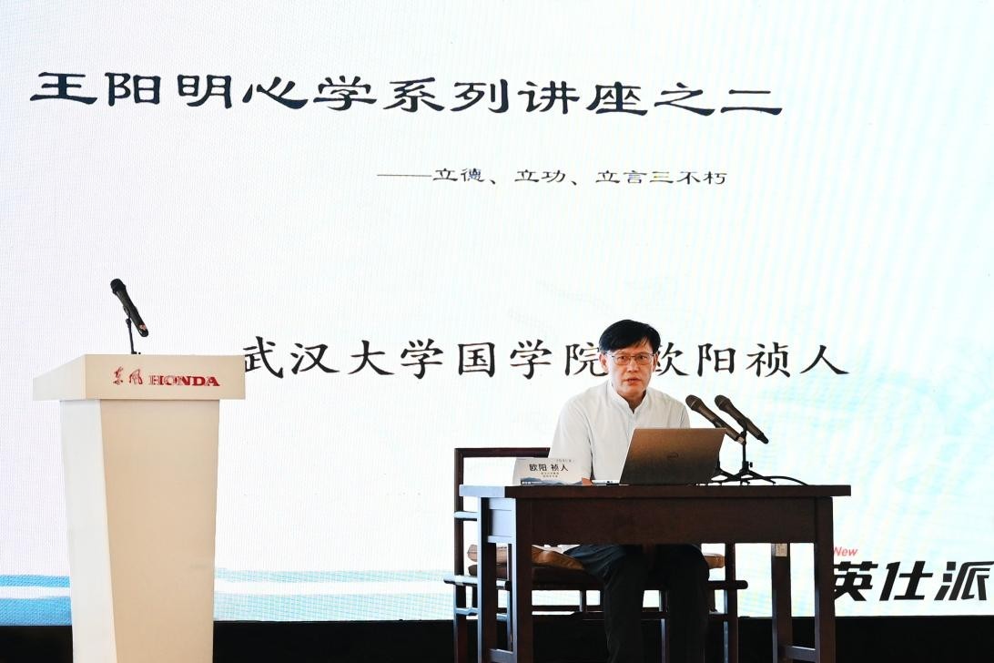 聆听智者之言,沐浴文化之风。武汉大学教授、阳明学专家欧阳祯人在稽山书院以一场“立德、立功、立言”的讲座,栩栩如生地讲述阳明心学的发展过程。知行合一的王阳明从小承袭家族荣耀、树立“经略四方”之志,用心品读圣贤之书;此后在不断探索、实践中,体察到前人思想体系中的矛盾和不足,遂以一颗睿智有为之心,首倡“知行合一”理念,逐步创立“心学”体系。