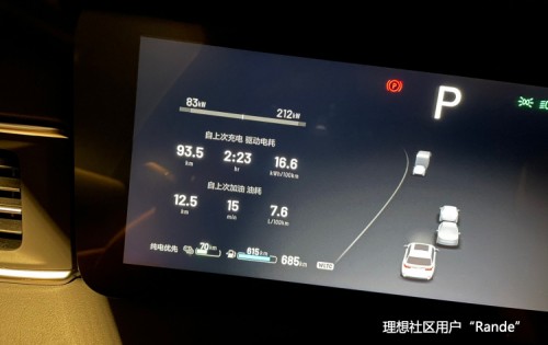 图自:理想汽车用户“远行616”