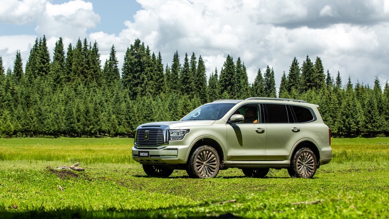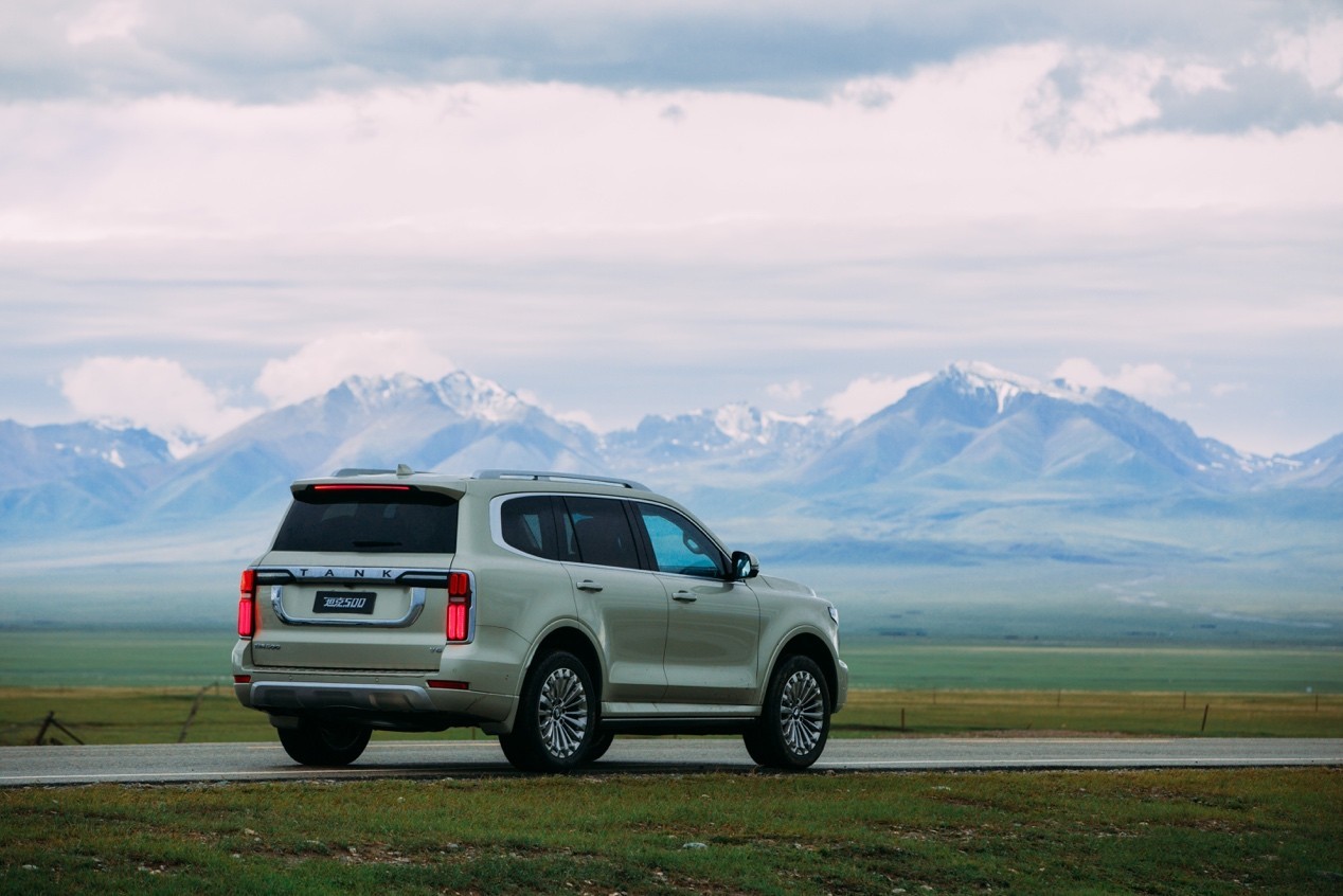 坦克500以遒劲身线勾勒出大尺寸车身,用中正大气、雄厚端庄的设计将气场拉满,成为新疆美景中浓墨重彩的一笔。