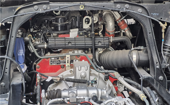 该机型创新性地采用双级增压技术,很好地解决了四缸机低速响应慢,山区复合工况适应能力差,高原高海拔扭矩不足这三大痛点问题。其最大的技术亮点是在瞬态响应方面,在1000r/min发动机低转速时就可输出780Nm扭矩,0-30km/h起步加速仅5.03秒。可实现2000米海拔最大扭矩无损失,3000米海拔扭矩仅下降5%。高原和山区适应性大幅度提升,让低速起步更快、爬坡能力更强。在自重方面,F4.5TT相比F4.5机型只增加了30多公斤,总重356公斤,比同马力段竞品轻了200公斤左右。