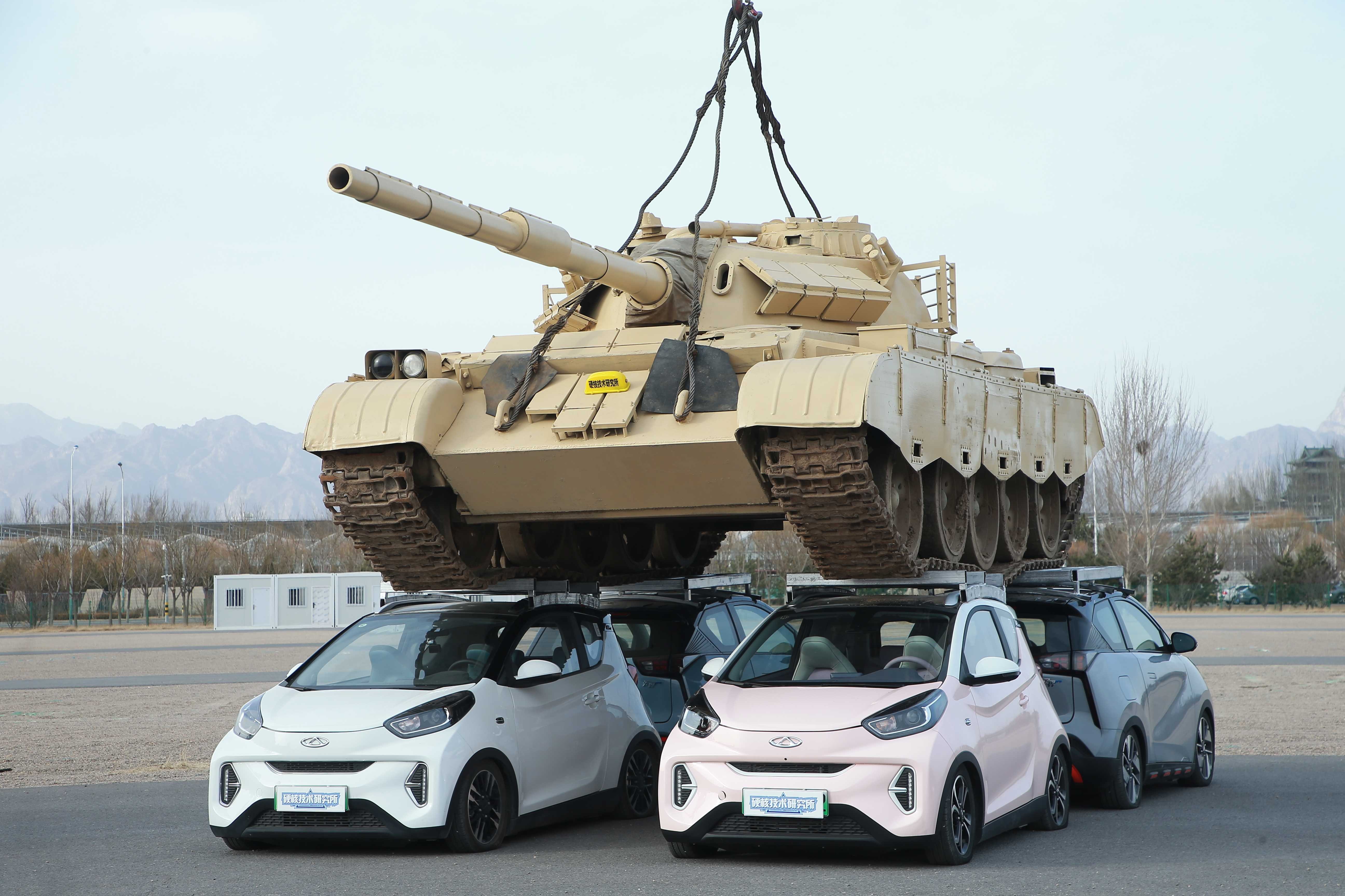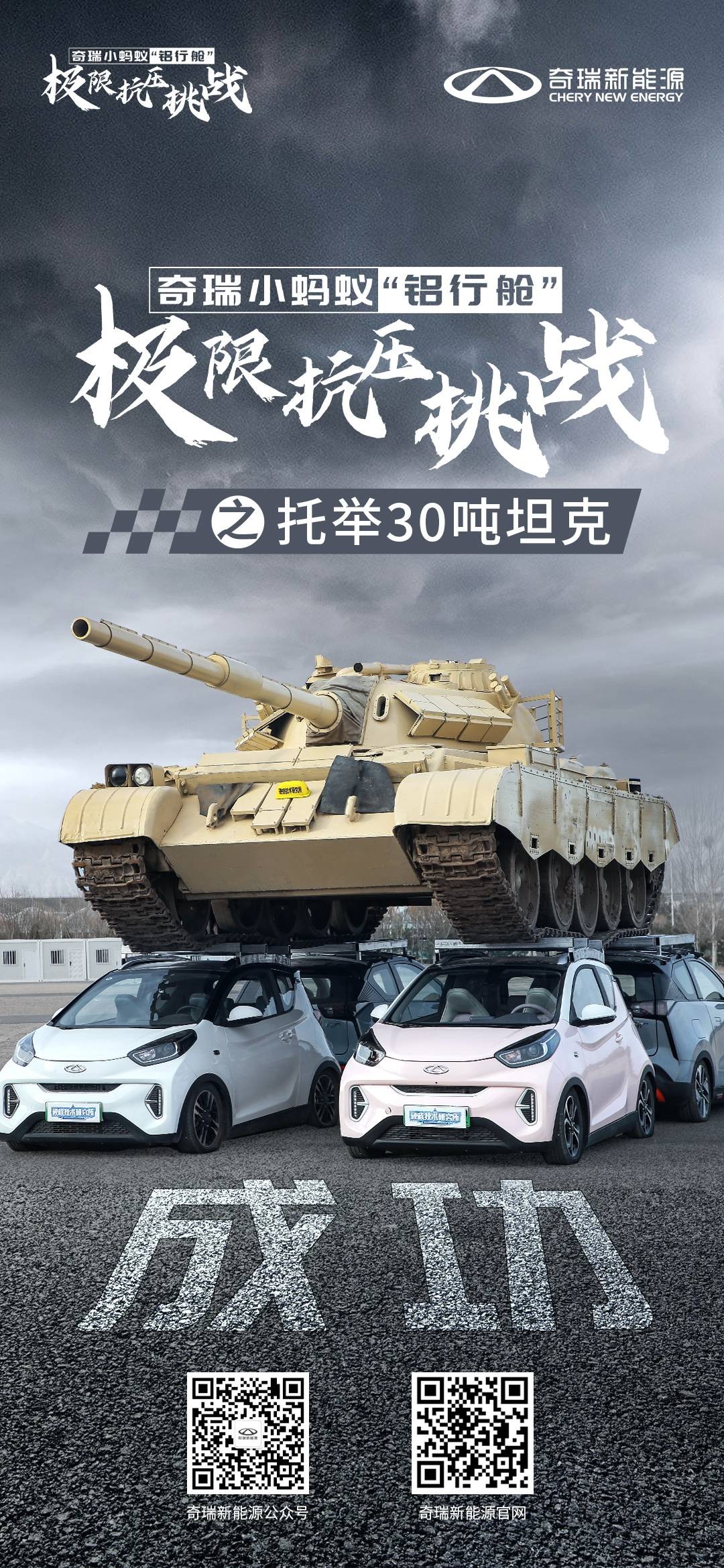 奇瑞新能源全铝双子星成功托举30吨坦克 真实力 扛得住!