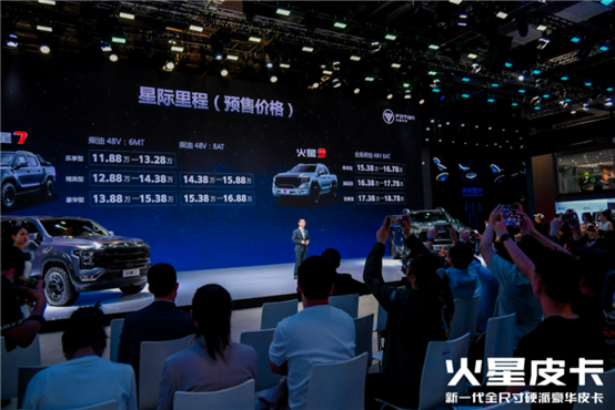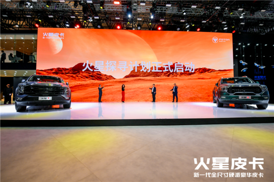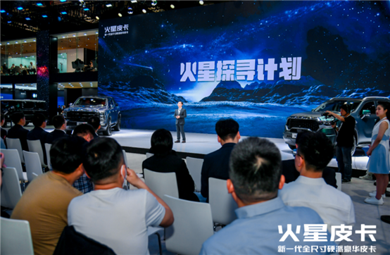 4月18日,2023上海车展正式开幕,新一代全尺寸硬派豪华皮卡——“火星”皮卡全球震撼首发,成为中国皮卡品类的破局者,开启中国全尺寸皮卡新时代,作为全球首款48V柴油混动全尺寸硬派豪华皮卡,预售价11.88-18.78万元,引发行业巨震,火星皮卡的正式亮相在上海车展百家媒体的共同见证下开启了中国皮卡市场新纪元。