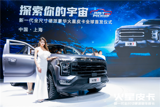 此次2023上海车展以“探索你的宇宙”为主题的火星皮卡全球首发活动,科幻感爆棚。火星皮卡的两款车型火星7和火星9在“全新平台+全新品牌”的加持下高调全球首发,正式开启中国全尺寸皮卡新时代,重新定义了大尺寸皮卡的标准,开创了皮卡新品类。