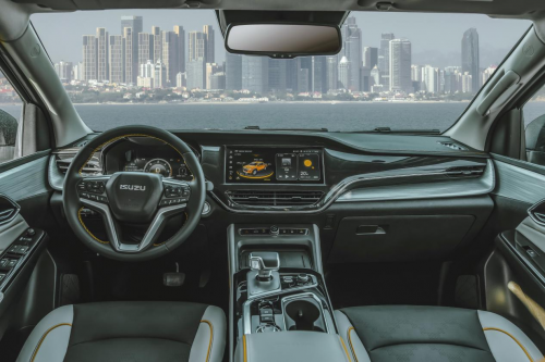 在内饰环节,D-MAX V-CROSS给人耳目一新的感觉,这样的设计更像一辆时尚的都市SUV,不看外观的话你很难把它和皮卡车型进行强关联。首先从配置上来说,10.25英寸液晶仪表、12.3寸中控大屏全系标配,流畅醒目的设计深得人心。