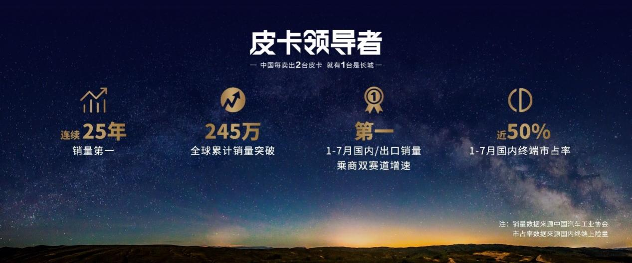 皮卡传奇,始于长城。长城皮卡已连续25年销量第一,全球累计销量突破245万,长城炮上市仅四年,迎来了第50万台整车下线,成为首个突破50万台的中国高端皮卡品牌。本届车展,长城炮将携全性能产品矩阵亮相,以高价值实力车型助力品牌向上。