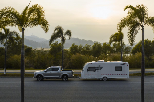“现在山上的温度,已经不适合住帐篷了。山海炮乘用版出厂自带拖挂资质,预留拖车取电口、后牵引装置,可以拖拽3.3吨以内机车、路亚艇、房车、摩托艇等,越野人的目的地,从不设定在成熟的景点,无处投宿已成常态,拖拽房车,大家就不需要钻帐篷。”豆丁说。