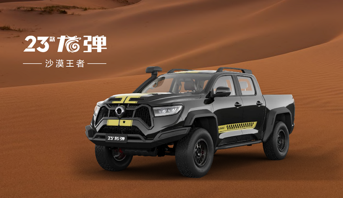 23款龙弹是长城炮与远大谢尔比共创打造的“沙漠王者”,外观设计霸气狂野,越野性能全面提升,澎湃动力所向披靡,给了硬核玩家一份想野就去野的底气。