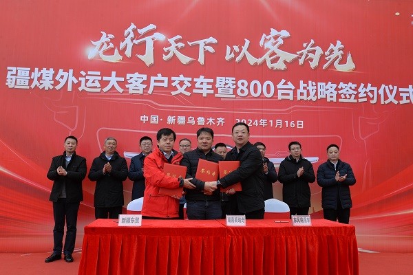 龙行天下,以客为先 | 800台子母车签约,东风商用车2024疆煤外运迎开门红!