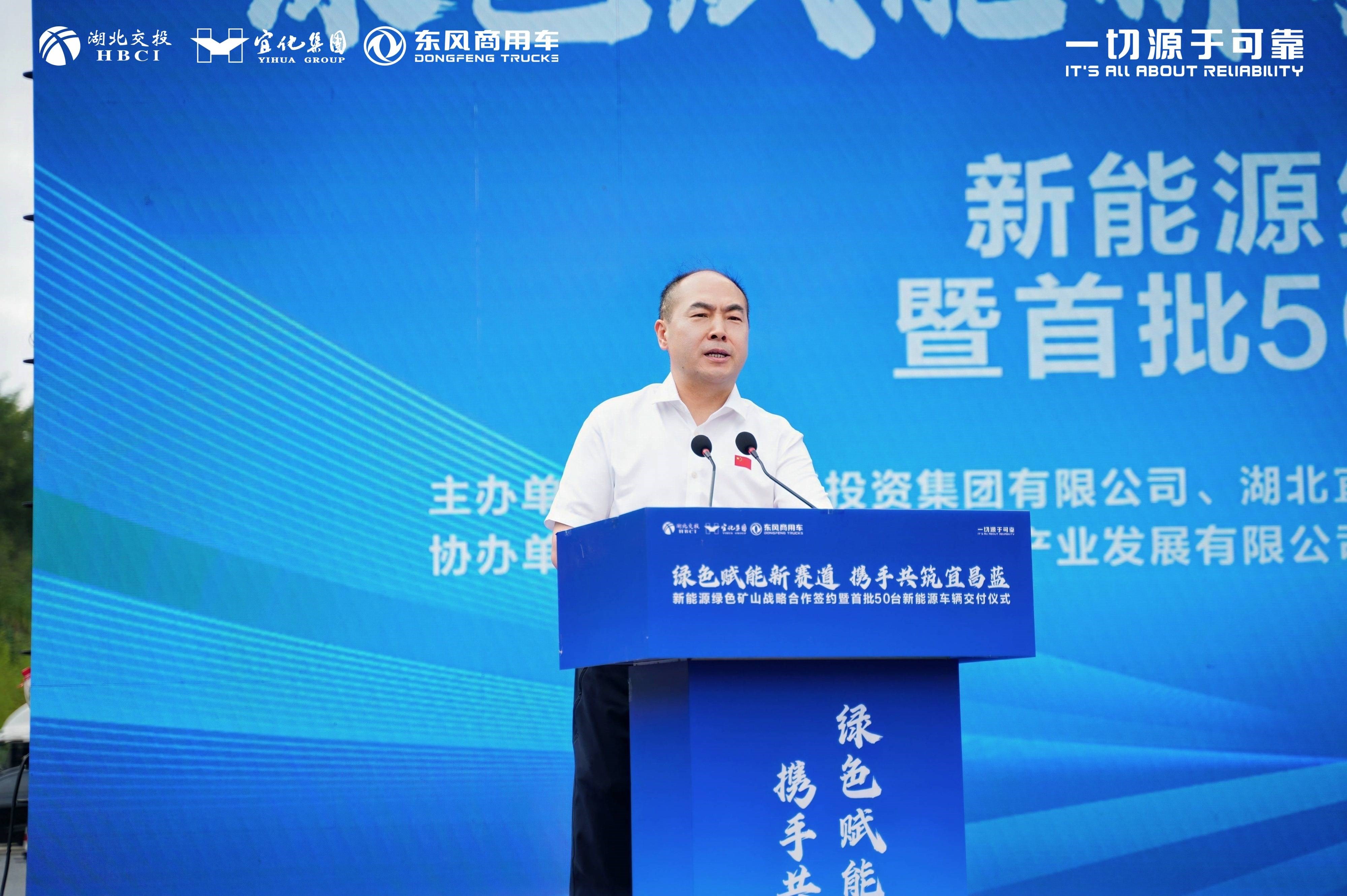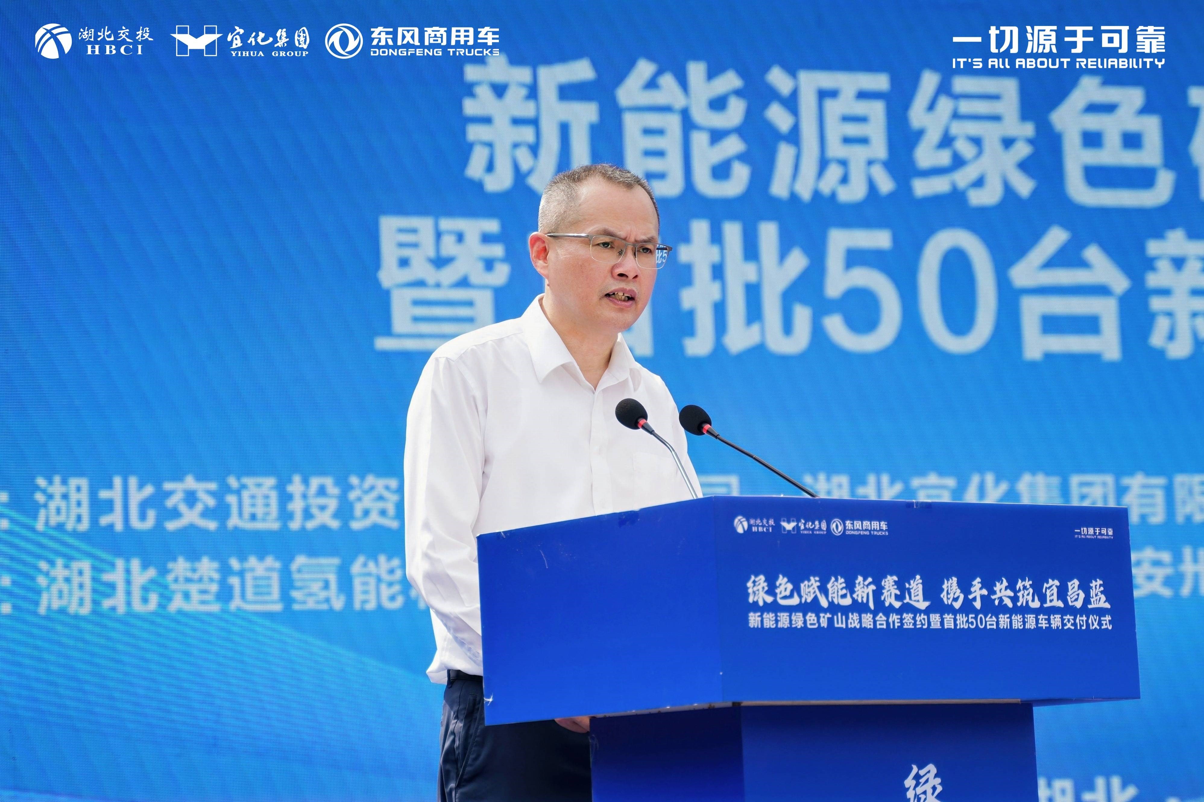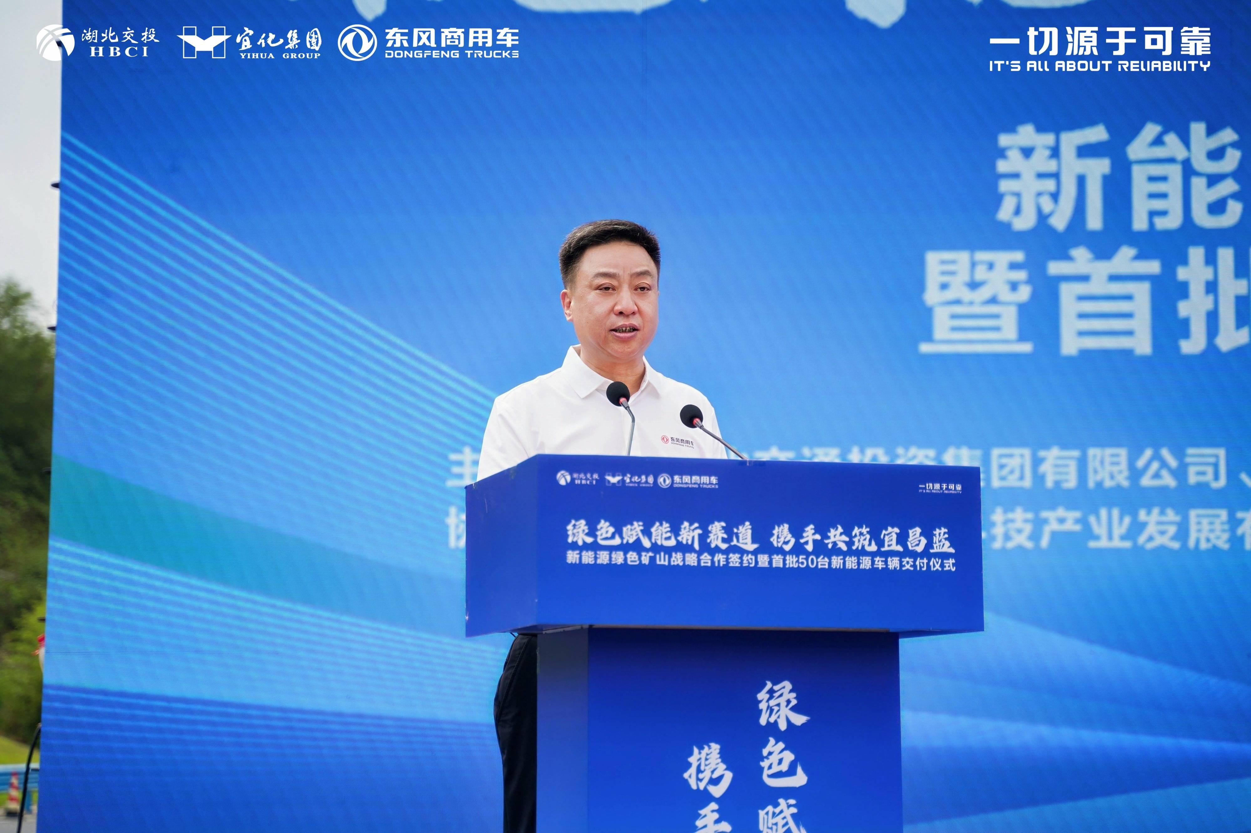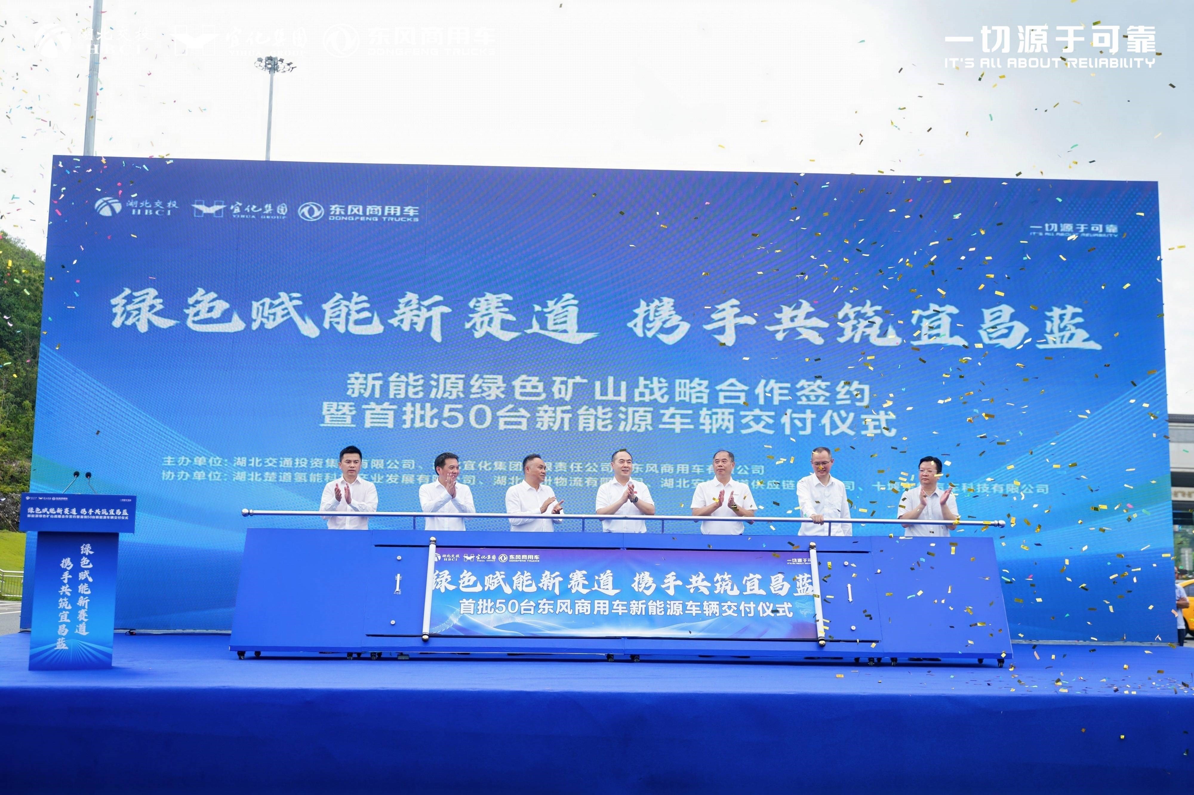绿色赋能新赛道,携手共筑宜昌蓝。8月15日,东风商用车有限公司、湖北交通投资集团有限公司(以下简称“湖北交投”)、湖北宜化集团有限公司(以下简称“湖北宜化”)在宜昌举行“新能源绿色矿山战略合作签约暨首批50台新能源车辆交付仪式”。宜昌市政府副市长崔伟宁,湖北交通投资集团有限公司党委委员、副总经理雷承,湖北交投楚天高速党委书记、董事长王南军,党委委员、总经理阮一恒,党委委员、副总经理王德强,湖北宜化集团党委副书记、副总经理李刚,湖北宜化集团安卅物流董事长闵江,湖北安卅物流有限公司副总经理高迎春,东风商用车有限公司党委书记郑华、营销事业部党委书记蔡伦新、新能源事业部副总监李庆欣及上下游产业链伙伴出席,共同见证这一区域交通运输绿色转型的重要时刻。据悉,此次交付的车辆专为宜昌地区打造,投入后将服务于宜昌磷矿运输主干线路,助力区域绿色矿山建设和低碳物流发展。