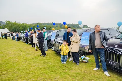 秋日微风中,星海V9新用户集体交付仪式在露营草坪上正式开始。30组用户家人们齐聚一堂,共同见证这一重要时刻。当用户们依次接过交车鲜花和礼品时,现场响起了热烈掌声。每一台星海V9的交付,都承载着一个家庭对美好户外生活的期待。