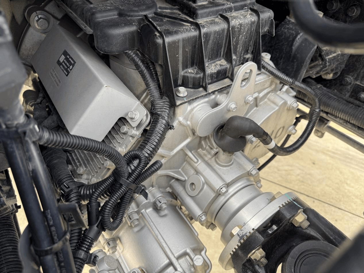 与强悍电机相匹配的,是绿控4挡AMT变速箱。这套卓越的动力系统,彻底解决了传统手动挡在山区频繁换挡的劳累与顿挫问题。对于卡友来说,这意味着操作极大简化,解放了左脚和右手,降低了长时间驾驶的疲劳强度,同时能耗更优,系统能始终让电机工作在高效区间,有助于降低电耗,节约运营成本。