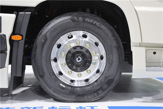 全车轮胎采用315/70R22.5规格的米其林X LINE低滚阻轮胎,搭配轻量化铝合金轮毂。前后车桥均为德纳系列免维护车桥,配置通风盘式制动及EBS电子制动控制功能。