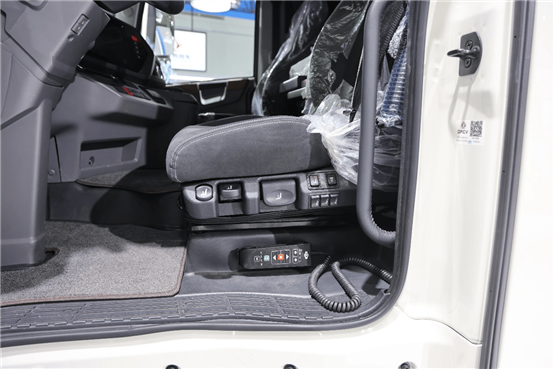 主驾座椅采用伊思灵NTS875气囊减震座椅,不论是在国内还是欧洲,都应该是天花板级别的座椅了,带多段阻尼调节、高度调节、一键充放气、通风加热和腰部支撑的功能,座椅表面为织物面料,比较符合欧洲人的用车习惯。