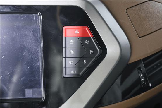 基本功能控制均保留实体按键,驾驶员操作触手可及,不需要到大屏内的翻找各项功能,这才是正常卡车该有的配置,而不是把所有功能甚至悬架控制都集成到大屏当中。