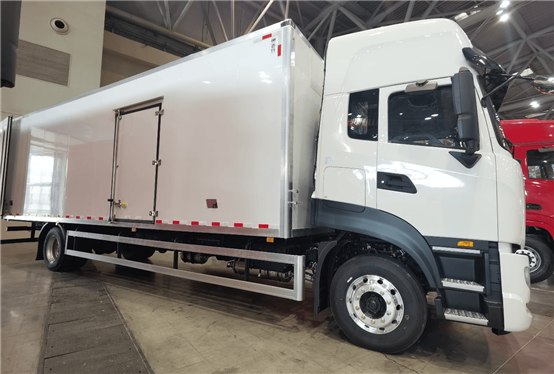 根据长途运输场景需求,其采用2460mm宽体四点悬浮驾驶室,高顶双卧,卧铺宽度达900mm,满足司机在车内长期工作休息的空间需求。另外,后桥采用复合空气悬架(钢板+气囊),兼顾减振和重载需求。在恶劣复杂道路工况下可以减少对货物的损伤,这也是高端冷链货品运输的必要配置。在货厢上,采用东风专汽生产的轻量化高强度保温箱,预埋钢骨架+气流导轨与板材整体发泡结构,地板承载强度高,能够使用叉车装卸货物,可以防止侧围胀箱。
