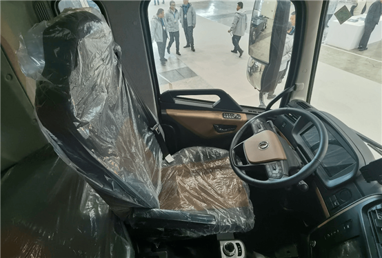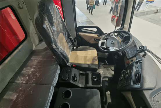 车辆匹配全新二代电驱桥,取消了传动轴,其传动效率高于中央驱动。电机额定功率150kW(204马力)、峰值功率252kW(343马力),从之前的2挡升级为4挡变速箱,轮端最大输出扭矩为39000牛米,可满足各种恶劣路况和上陡坡的动力需求。在补能效率方面,匹配双枪充电,最大电流可达到600A,30分钟即可从SOC20%充到80%,大幅提升运输效率,也可以拓展电动中卡的使用场景。