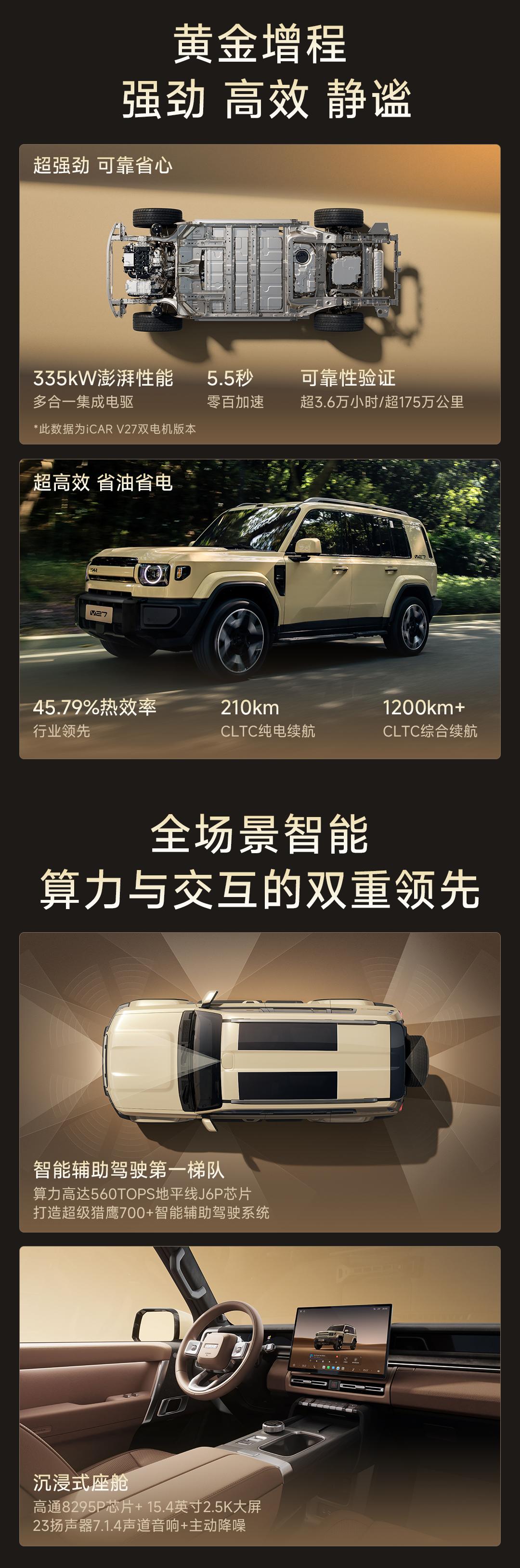 动力方面,新车将采用由 1.5T 发动机与电机组成的增程系统,发动机最大功率为 105kW,并会拥有后驱以及四驱版本,其中四驱版的最大功率有望达到 335kW,最大 CLTC 纯电续航里程 200km,综合续航里程有望突破 1000km。