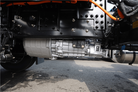 车辆采用高能量密度电池,电池自重轻,配合轻量化高强钢大梁,前2后3片钢板弹簧悬架等等一系列配置,车辆自重得到整体减轻,助力用户在计重结算的资源类运输市场多拉快跑。